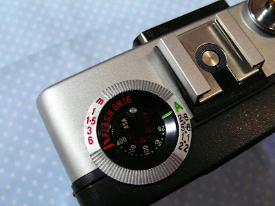 底片ISO/ASA值的調整則在相機上方的圓盤調整,請轉動內圈,讓數值對準紅線,圖中的設定為ASA 400。